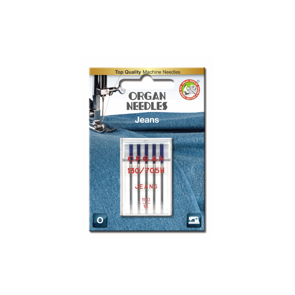 A Agulha Jeans Organ é ideal para jeans, lona, sarja e tecidos pesados. Possui ponta fina reforçada e haste resistente para reduzir desvios e diminuir falhas de ponto.